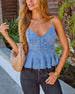 Flirty, fitted, and full of personality, the Alenah Denim Peplum Top is your new denim-day upgrade. With its subtle stretch and structured feel, this top hugs you in all the right places while the sweetheart neckline adds a soft, romantic touch. Adjustable shoulder straps let you find your perfect fit, and the peplum hem gives just the right amount of flair.