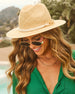 Top off your summer look with the Alisson Rope and Chain Straw Hat. Featuring a chic twisted satin rope band intertwined with a gold-tone chain, this hat delivers instant glam with zero effort. The center pinch crown design adds timeless structure, while the natural straw keeps it feeling easy, breezy, and vacation-ready.