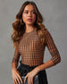 All The Craze Velvet Mesh Houndstooth Bodysuit