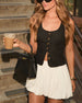 Meet your new summer staple: the Ansela Buttoned Vest Top. Draped in soft crepe jersey, this top flows effortlessly with every move, while front button closures add a touch of timeless charm. Faux front slip pockets keep it sleek and polished, and the adjustable back strap lets you find your perfect fit, because comfort should never be compromised. Pair it with the matching Ansela Pleated Trouser Shorts for a look that’s cool, chic, and totally unforgettable.