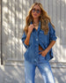 Keep it classic in the Boardwalk Cotton Blend Vintage Wash Button Down Top in medium wash denim that features bust pockets.