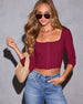 Meet the Brisella Crop Long Sleeve Top, your newest wear-on-repeat piece that serves structure and softness. Made from lightly ribbed jersey with a hint of stretch, it hugs in all the right places while staying comfy enough for all-day wear. The square neckline adds a modern edge, while front hook-and-bar closures and a faux boned bodice detail give it that corset-inspired feel, without the restriction.