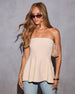 The Cadee Strapless Peplum Top brings structured ease with a bold edge, thanks to its heavyweight ribbed knit fabric and clean, body-hugging lines. The strapless neckline shows off your shoulders, while the flared peplum hem adds that effortless flounce we love. Finished with an exposed back zipper for just the right amount of attitude, it’s a flirty-meets-polished piece made for rooftop dates, gallery openings, or wherever your summer story takes you.