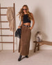 Perfect for crisp autumn days when you want to feel effortlessly chic without trying too hard, enter the Caresse Corduroy Maxi Skirt. Made for all the warmth and texture you crave and wrapped in a sleek and relaxed silhouette this piece is the one your closet craves . This corduroy beauty features side slant pockets for easy confidence and a front slit that flirts just right with every step.