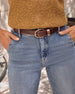 Cinch it, style it, own it, the Chestnut Haze Croc Embossed Waist Belt is your new favorite finishing touch. Designed in rich croc-embossed leather with a sleek buckle closure, this belt instantly pulls any look together with elevated edge. Whether you're defining your waist over a blazer, leveling up a flowy dress, or giving structure to denim, this accessory delivers major impact with minimal effort.