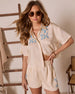 Here’s to golden hour and good vibes, the Drinks On Me Embroidered Button Down Top is your chic, playful answer to summer dressing. Made from lightweight crepe with a subtle sheen, this relaxed-fit top is all about easy elegance with a fun twist. The contrast embroidered martini glass at the front adds a cheeky nod to your favorite aperitivo, while the button-down front and airy feel keep it effortlessly polished. Pair it with the matching Drinks On Me Embroidered Shorts for the ultimate Euro summer set.