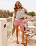 Your new everyday fave with a sporty-chic twist has just been found with the Emiley Knit Contrast Stripe Shorts. Made from soft, feel-good knit fabric, these shorts are all about easy movement and laid-back polish. The elastic waistband keeps things comfy, while the bold contrast stripes give it that just-right pop of nautical flair. Whether you're lounging dockside, hitting the farmers' market, or heading out for a spontaneous beach day, these shorts bring elevated ease to your look.