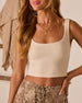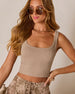 Our Energy Ribbed Knit Crop Tank will be your go-to layering top! This taupe ribbed knit crop tank is designed with a scooped neckline. The stretchy fabric pairs well with distressed denim shorts.
