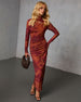 The Faint Prism Printed Maxi Dress turns every angle into something softly mesmerizing. Designed in ruched floral mesh, this body-hugging silhouette balances romance and edge with a dreamy, stretch fit that moves with you. It’s the kind of dress that makes you feel instantly put together, whether you’re heading to an art gallery opening, rooftop soirée, or simply want to bring a little magic to your everyday.