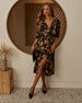 A perfect blend of elegance and ease for all the fall festivities can be found with the Fall Gardens Floral Satin Midi Dress, Made from luxe satin fabric, this midi dress features a front button closure for a tailored touch and a detachable waist tie that lets you define your silhouette. The floral print adds a whimsical yet chic vibe, making it ideal for holiday gatherings, family dinners, or any autumn occasion.