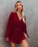 //VICI Exclusive//Best Seller// New Color// Romance is calling in our Found Love Pleated Romper! Featuring a fully pleated beige fabrication. Designed with a v-neckline, cuffed long sleeves and a button down front closure. The billowy fit accentuates at the waist with an adjustable fabric tie. This flirty ensemble finishes with a curly ruffle trimmed hemline. Styled with the Perfect Hoop Earrings, Turnout Layered Chain Necklace, Chic Crossbody Chain Pouch Bag, and Ritz Faux Suede Pointed Heel.