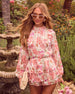 Channel all the fresh, flirty vibes of spring with the Garden Glee Ruffle Floral Romper. Made from airy satin chiffon with subtle metallic threading, this romper shimmers beautifully under the sun. The mockneck styling and back cut-out with tie closure add a chic, unexpected twist, while the blouson sleeves with elastic cuffs bring a touch of romance. Finished with a tiered hem for extra movement, it’s perfect for Easter brunches, garden parties, or spontaneous springtime adventures.