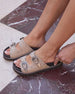 Kick up your heels with the Hadyn Western Studded Buckle Sandal – the perfect blend of bold and flirty. These slip-on sandals feature a studded vamp with dual buckle accents that bring just the right amount of edge to your romantic look. With a molded footbed for ultimate comfort, you’ll be dancing through the day and into the night without missing a step. The smooth faux leather fabric adds a luxe feel while keeping things effortlessly cool.