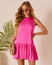 Bring the heat and turn every sidewalk into a runway with the Heatwave Bubble Hem Mini Dress. This statement-maker is all about playful volume and sun-soaked shine, thanks to its silky crepe satin fabric and bold bubble hem that swishes with every step. A subtle back keyhole with a loop button closure keeps the vibe flirty and effortless. Whether you're headed to rooftop cocktails or that destination dinner by the sea, this dress says you're here for a good time (and a good outfit).