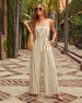 Your one-and-done answer to looking instantly put-together. The Julianne Striped Waist Tie Jumpsuit is what happens when laid-back charm meets effortless elegance. Cut from breezy midweight crepe with a soft drape, it features adjustable shoulder straps, a partial front button detail for just the right hint of flirt, and a detachable braided belt with tassel ends that cinches the waist to perfection. The subtle stripes elongate your silhouette while keeping things playful and polished.