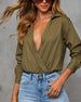 Discover effortless sophistication with the Keep On Collared Bodysuit—your essential for the new season. Crafted from crisp poplin fabric, this bodysuit features a chic surplice front with a mini snap button closure, adding a touch of refined detail. Perfect for layering under blazers or pairing with your favorite skirts, it's a versatile staple that transitions seamlessly.