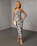 Consider this dress your personal work of art for any occasion. The Klyra Abstract Maxi Dress makes a statement without saying a word, blending gallery-worthy design with go-anywhere comfort. Its ruched mesh fabric features a stunning abstract pattern and a bodycon fit that celebrates your silhouette. The stretch material and simple pull-on styling make it effortlessly chic. Dual adjustable back straps and a graceful scoop back offer a customized fit with a hint of allure.