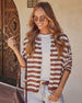 Whether you're sipping cider, running errands, or heading to brunch, the Leaf Me Striped Cardigan is the layer you'll reach for on repeat. Designed in soft knit fabric with rolled raw-edge trims at the neckline and cuffs, it hits that sweet spot between laid-back and standout. Front button closures let you wear it open over tanks or buttoned up with denim for that effortlessly cool finish.