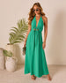 When the temps rise, the Leilanie Halter Cut Out Maxi Dress brings the heat. Made for sunset dinners, beachside parties, and anything that calls for a little heat, this sultry number features a plunging neckline with a flirty front tie, halter neck styling, and a daring cut-out bodice framed by soft elastic trims. The lightweight crepe jersey moves like a breeze, keeping things cool while looking fire.
