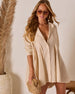 The Letecia Mini Shirt Dress blends breezy vibes with a touch of edge, all wrapped up in lightweight crinkle crepe. Raw cut pleated trims add subtle texture, while breast slip pockets bring laid-back practicality—because style should never sacrifice function. Front button closures and banded buttoned cuffs give it that cool, effortless shirt-dress feel that transitions perfectly from daytime adventures to sunset cocktails.