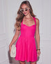 Turn every entrance into a moment with the Loleen Fit and Flare Bustier Mini Dress. This flirty favorite is designed in soft crepe jersey for a smooth, flattering fit with just the right amount of stretch. The bustier-style bodice with unpadded underwire cups adds structure and shape, while the lace-up back brings that extra wow factor (and lets you adjust the fit to your vibe).