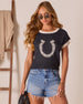 The Lucky Trail Horseshoe Contrast Sweater is your go-to for cozy moments with a hint of western flair. Made from a midweight knit jersey, it’s soft enough for lounging, yet polished enough to throw on for a last-minute coffee run. The standout horseshoe graphic at the front brings that Cowboy Summer energy, equal parts luck and attitude while ribbed contrast trims add just the right amount of pop.