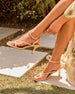 When the night calls for shimmer and confidence, Luzina answers. These metallic faux leather heels were made to be seen, whether you're stepping into candlelight or catching the glow of city streets. With sleek, strappy detailing, a modern square toe, and an ankle buckle that wraps with just enough attitude, Luzina walks the line between bold and refined.