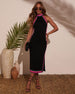 Sip, sway, and stun in the Mai Tai Contrast Halter Midi Dress. This head-turner is made from soft knit jersey with bold contrast crochet trim that brings just the right pop. The halter mock neck with a tie closure serves sleek sophistication, while the open back turns up the heat. A subtle slit at the hem keeps things flirty and free-flowing, perfect for dancing barefoot or strutting seaside.