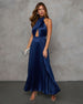 Designed for those standout moments, the Mariena Halter Neck Pleated Satin Maxi Dress, the ultimate showstopper. Crafted from luxe pleated satin fabric, this dress brings an elegant flow with every move and a crisscross neckline with a bold bust cut-out adds a daring twist. Whether you’re headed to a wedding, gala, or any event that calls for a head-turning look, the Mariena dress is your go-to for effortless glam.