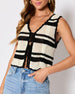 If laid-back luxe had a summer fling, it’d be the Meghan Knit Sleeveless Sweater. Featuring open-knit fabric with playful striped panels, this sweater is a breezy nod to all-day comfort with a side of standout style. Front tie closures add just the right touch of flirty detail, making it perfect for layering over your favorite camis or rocking solo when the sun’s out. Whether you’re sipping rosé on a rooftop or strolling the weekend market, Meghan strikes the perfect balance between easygoing and elevated.