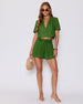 If golden hour were a pair of shorts, the Natalie Linen Pocketed Tie Waist Shorts would be it. With a subtle sheen that catches the light just right, this pair delivers effortless polish without trying too hard. Made from lightweight linen and detailed with pintuck accents, a detachable waist tie, and side slant pockets (yes, real ones!), they’re the definition of “put-together but chill.” Pair with a tucked tank or the matching top and get ready for compliments with every step.