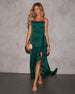Embrace the season with confidence in the Own It Satin Maxi Dress. This luxurious satin gown features a cascading ruffle detail along the side slit, adding a dynamic touch of elegance to every step. The lightly padded bust and boned bodice ensure a flawless fit, while the back cut-out with lace-up tie closure creates a captivating silhouette. Perfect for making a statement at any dress-up occasion, this dress combines chic sophistication with effortless style.