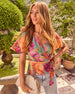 Say hello to sunshine style in the Peachy Promises Wrap Tie Top, a dreamy, breezy piece made for summer moments that linger. Designed in lightweight, semi-sheer crepe with a watercolor floral print that feels like golden hour in full bloom. The surplice front features a hidden mini snap for a secure fit, while the attached wrap tie cinches you in just right. Flutter sleeves add a playful touch that moves with you, making it perfect for brunch dates, rooftop cocktails, or garden soirées.