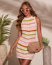 Instant mood boost: just add the Reyna Chevron Print Tank Mini Dress. Made for sun-chasing days and poolside lounging, this playful mini turns heads with its multicolor chevron print and breezy open-knit design. The perforated detailing adds a hint of flirt while keeping things cool and airy, ideal for slipping on post-swim or styling up for a golden hour spritz.