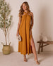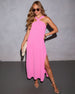 When your outfit does the most without you having to, enter the Rissa Halter Maxi Dress. Breezy crinkle crepe meets a bold halter neckline with a playful knot detail that turns heads (and starts convos). The elastic back keeps things comfy while still hugging in all the right places, and the side slit? Just enough leg to keep things interesting. Whether you're headed to a rooftop dinner, beach wedding, or just feeling like a main character moment, Rissa delivers that cool, polished ease.