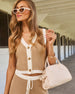 The Rosemere Contrast Knit Sweater is your chic getaway essential, soft midweight knit meets eye-catching contrast trims for that effortless luxe vibe. Front button closures let you play with styling wear it open over a cami or buttoned up for a sleek, put-together look. Whether you’re sipping cocktails by the pool or exploring a coastal town, pair it with the matching Rosemere Contrast Wide Leg Pants for a vacation-ready set that’s relaxed yet undeniably polished.