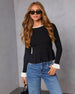 The Rouge Rebel Contrast Trim Peplum Top brings flirty drama with a side of edge. Made from a soft ribbed knit that hugs just right, this top turns heads with bold contrast trims, a waist-defining peplum hem, and those extra-touch bell cuffs that love a little movement. It’s equal parts polished and playful, the kind of piece that goes from dinner reservations to rooftop vibes without missing a beat.