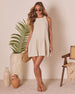 Breezy, effortless, and just the right amount of flirty, the Samaris A-Line Mini Dress is your sunshine-ready go-to. Made from lightweight linen that keeps you cool while looking polished, this mini features a swingy A-line silhouette and a playful flounce hem that moves with every step. The back keyhole with a loop button closure adds a soft, feminine touch without trying too hard.