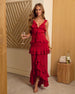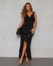 When sophistication flirts with a hint of playful charm, you get the Saylene Tiered Lace Maxi Dress, a showstopper designed to turn sidewalks into runways. Featuring a delicate flocked polka dot design on luxe mesh and crepe, this dress hugs your bodice and hips before flowing into a graceful column silhouette. The bow accent at the bust adds a sweet touch, while the front slit and ruffle trims bring just the right amount of sass.