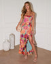 If you’re looking for a total showstopper for garden weddings, vineyard views, and golden hour magic, look no further than the Garden Song Floral Satin Maxi Dress. This silky floral dream features a structured padded bust and boned bodice for that snatched feel, plus a lace-up back that lets you customize the fit. The side slit is nothing short of alluring, finished with cascading ruffles that float with every step.