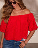 Take the scenic route in the Slow Stroll Off The Shoulder Top. This airy eyelet dream brings a romantic edge to any day date, with its shoulder-baring neckline and puff sleeves that feel equal parts playful and polished. The soft elastic trims keep things comfy while still serving charm in every detail. Whether you're strolling through the farmers' market or grabbing espresso curbside, this top pairs beautifully with denim, skirts, or linen shorts.