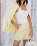 Be a boss babe in our Standards Pocketed Tailored Shorts! These Lilac shorts have a high rise fit and a structured waist. Finished with faux back pockets and a front zipper and hook closure.