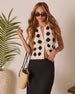 The Sunset Bloom Knit Vest brings retro charm and sunlit romance into perfect balance. With its soft crochet knit and vintage-inspired diamond checkered print at the front, this vest feels like something you stumbled across on a dreamy road trip, but better. Front button closures and ribbed trims add a polished finish, while the sleeveless silhouette keeps it light and versatile for warm-weather layering.