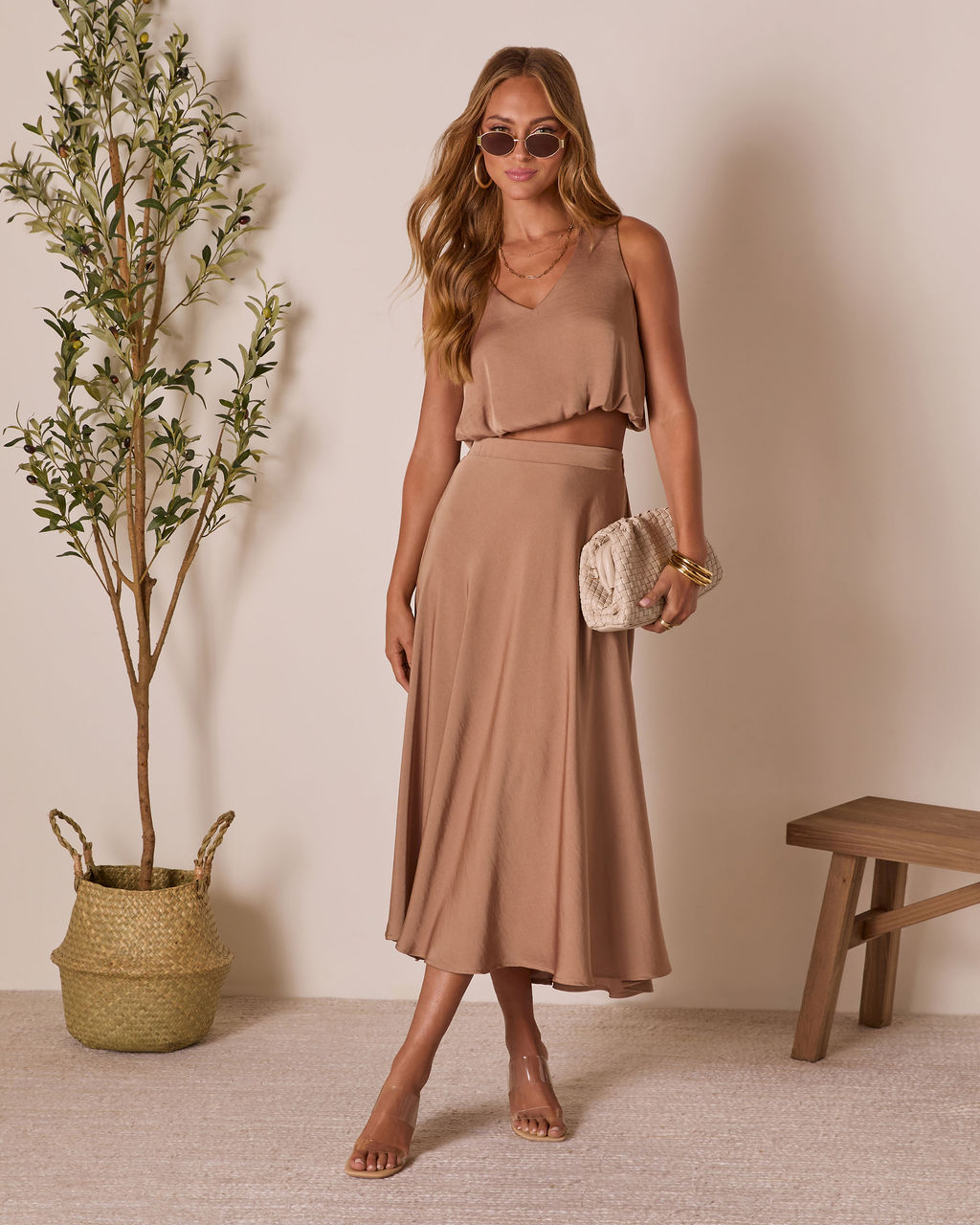 The Taylie Crop Top is your new style secret weapon if you’re ready to elevate your everyday. Made from luxe crepe satin with a flattering V-neckline, it strikes the perfect balance between flirty and refined. The subtle bubble hem with elastic trims adds a playful, modern twist that keeps things interesting without trying too hard. Whether you pair it with your favorite jeans or the matching Taylie Midi Skirt (sold separately), this top brings effortless chic to every look.
