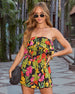 Meet your new tropical obsession: the Tropic Ease Floral Strapless Romper. Lightweight pleated jersey feels like a gentle ocean breeze, while the draped neckline overlay adds a touch of effortless glamour. The smocked bodice ensures a comfy, flattering fit, and the playful skirt overlay with a short lining keeps things flirty and fun. Whether you’re sipping cocktails poolside or dancing under the stars, this romper has your vacation vibes covered.