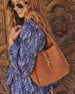 Some bags whisper luxury, the Weslie Suede Shoulder Bag absolutely purrs it. Sleek and soft in smooth suede leather, this elevated essential is your go-to for when casual needs a touch of polish. The front lobster clasp closure adds just the right amount of hardware edge, while the open top with magnetic snap keeps things easy but secure. Inside, a single roomy compartment holds your everyday must-haves without the bulk.
